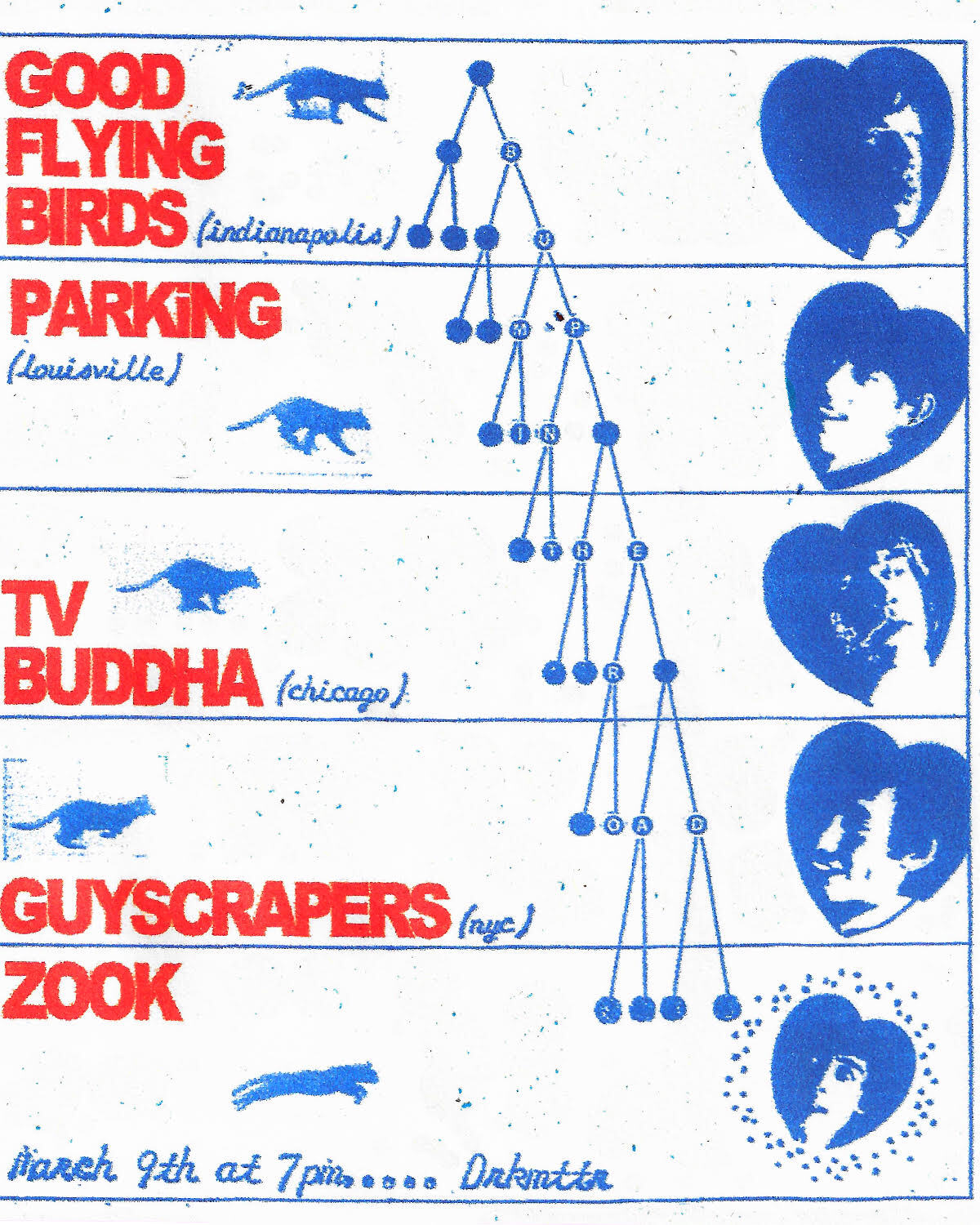 TV Buddha, Parking, Good Flying Birds, Guyscrapers, Zook